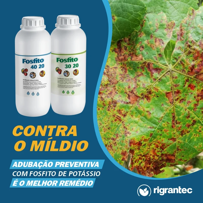 - Compatibilidade de mistura: Evitar misturar Fosfito com produtos que contenham estanho, calda sulfocálcica, óleo mineral, cobre, dimetoato, dicofol ou produtos de reação alcalina. Para outras misturas, é importante consultar o departamento técnico da Rigrantec.