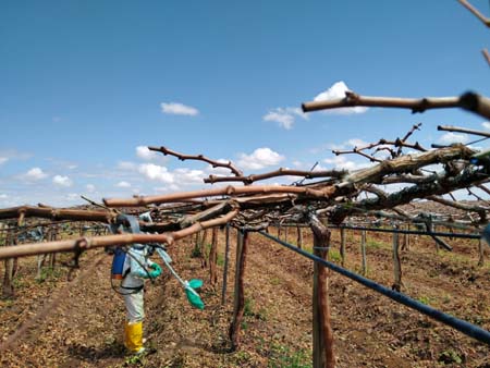 Realizou-se campo demonstrativo comparando o marcador de pulverização Hi-light e um concorrente. A pulverização ocorreu logo após a poda das videiras. O principal objetivo foi maximizar a eficiência e o aproveitamento da aplicação de Dormex, utilizado para estimular a quebra de dormência da planta para gerar novas brotações.