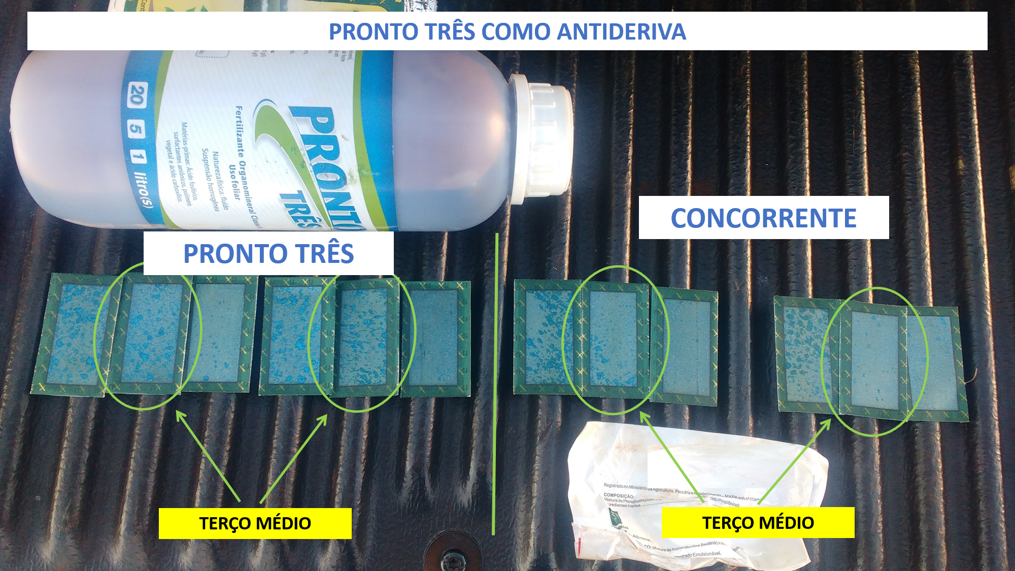 A fazenda onde se realizou o trabalho utiliza o concorrente em todas as aplicações há 6 anos, e o objetivo do trabalho foi mostrar resultado do Pronto Três. A avaliação lado a lado foi acompanhada pelo cliente.